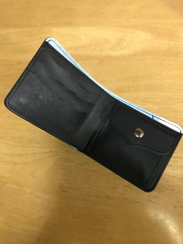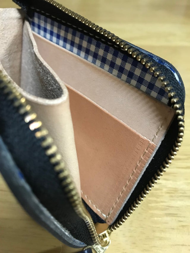 なるべく小さく、使いやすく、カードや小銭、お札も心配なく持ち運べる様にと考えて作った一品です