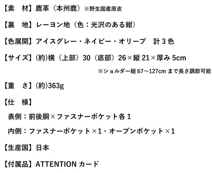 - 非常にソフトな野生国産原皮の本州(ホンシュウ)鹿を使用した体にフィットするオリジナルポシェット