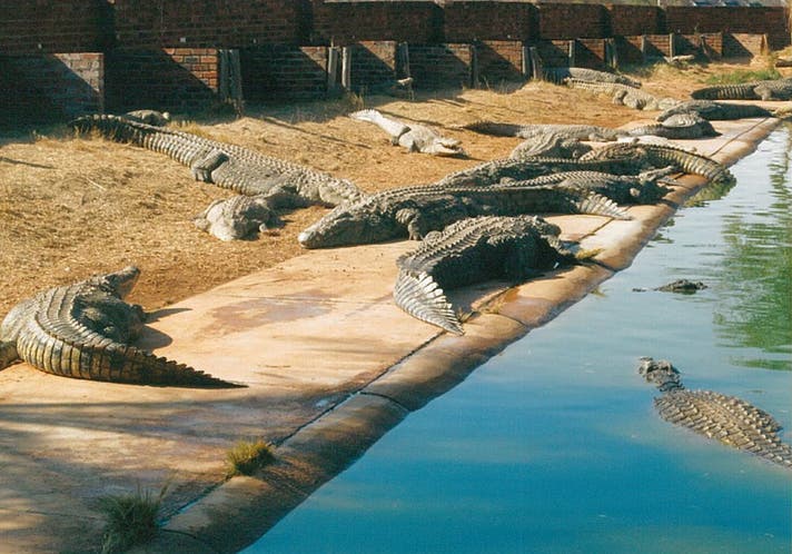 これらのクロコダイルは下の写真のような養殖場で育てられています。