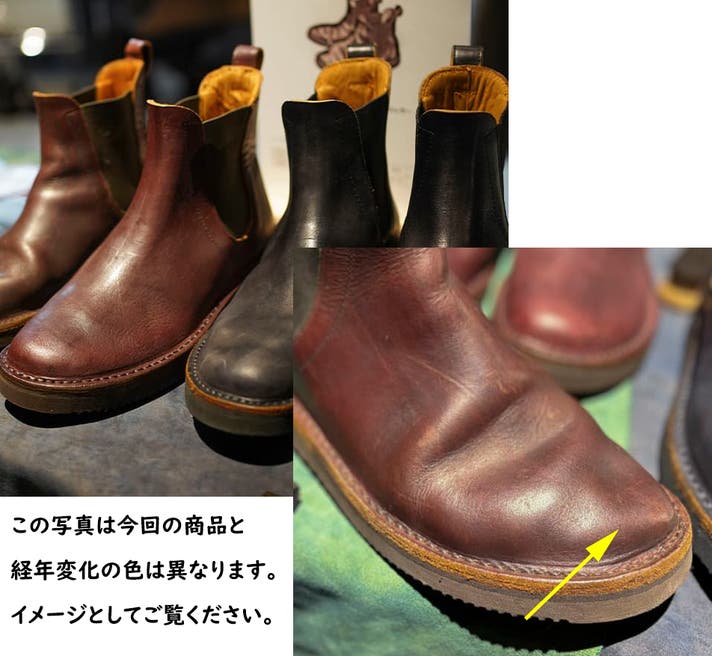 ※【茶芯】という言葉は皮革業界の専門用語ではなく、ヴィンテージレザーやブーツを扱う古着ショップなど使われている業界独自の用語のため、明確な定義はございません。