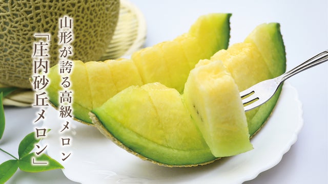 日本海に面した庄内砂丘で穫れた高級メロンです。庄内砂丘は日本三大砂丘のひとつとされ、長さ日本一の砂丘として知られています。夏は昼は足が火傷するほどの高温になり、夜は海からの風が砂丘を一気に冷やします。この砂丘の生み出す昼夜の温度格差は作物に濃厚な食味をもたらすとされています。古くから酒処でもある良質な地下水で育った果肉は滑らかな舌触りと高い糖度が自慢です。真夏の季節に瑞々しいメロンはいかがでしょうか!