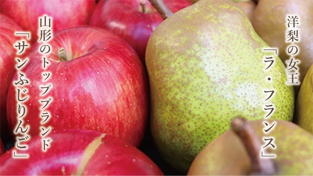 実りの季節の秋には名産品のラ・フランスとりんごをセットでお届けいたします。