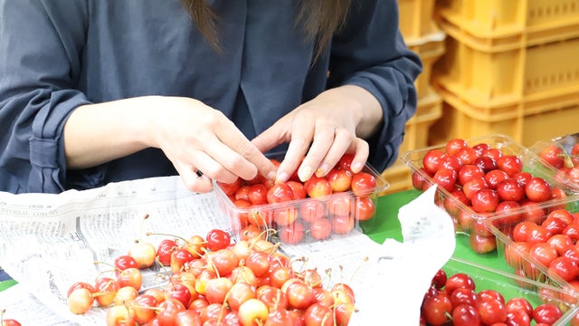 さくらんぼの収穫時期は梅雨の時期とかさなる為、突発的に沢山の人員が必要となります。雨にあたり過ぎれば水分量が多くなり身割れして出荷できなくなるため大変です。ピーク時には準備を含め24時間体制で対応する日が数日間続くほどの忙しさになります。