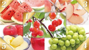 ※賞味期限:さくらんぼ/3日[冷蔵]・ 尾花沢スイカ/5日[常温]・白桃/3日[常温]・ シャインマスカット/4日[常温]・ サンふじりんご/7日[常温]