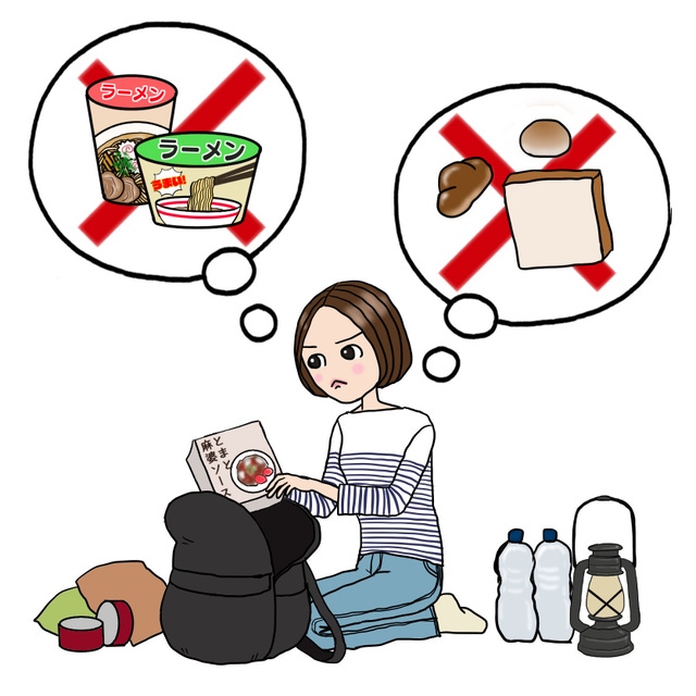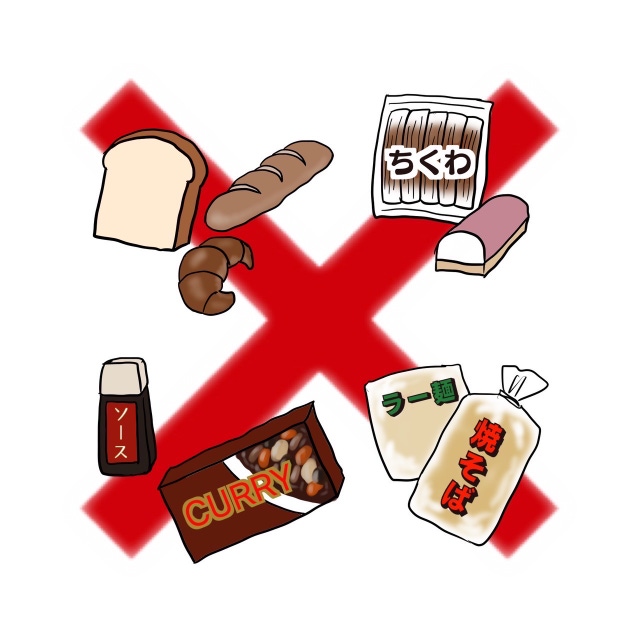 避難所で配られるカップ麺やパンは食べられないので、自分で備えておく必要があります。グルテンを含まない非常食を一つでも多くストックしておく事が重要ですが、限られた商品に頼らざるを得ません。