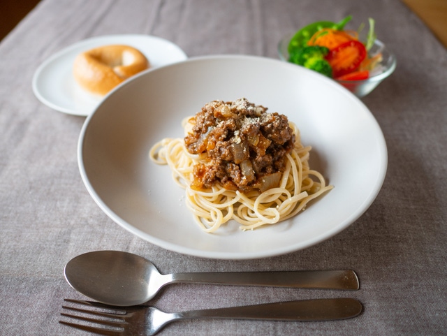 当日の主なメニュー(予定):玄米パスタのボロネーゼ、とまと麻婆丼、他副菜