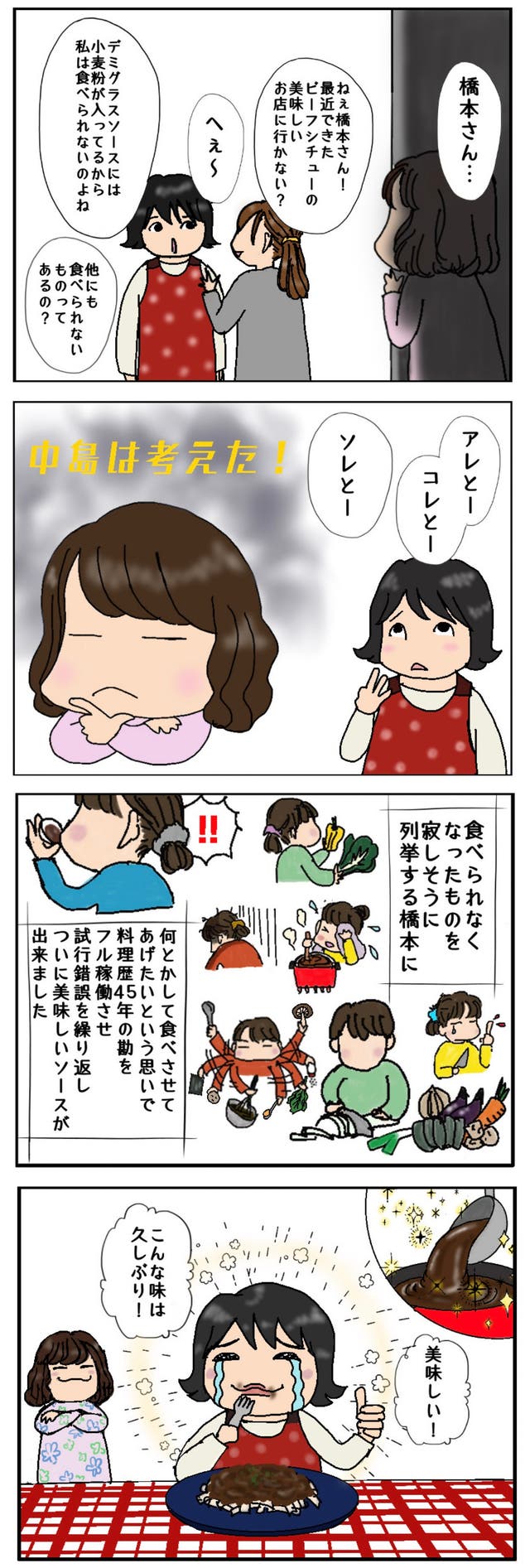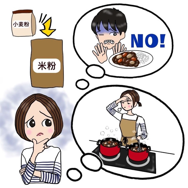 小麦粉を米粉などに置き換えて、小麦粉除去食を試行錯誤しながら作っても、食べ慣れた味とは違うため食が進まなかったり、家族には不評なため家族分とは別に調理しなければなりません。