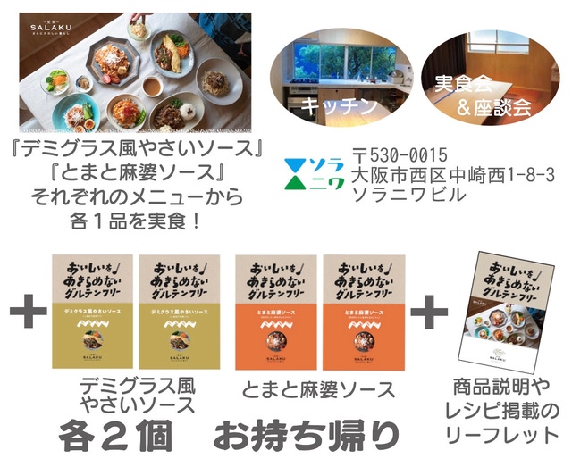 ︎内容:『デミグラス風やさいソース』と『とまと麻婆ソース』を使って開発者が調理したメニューを実食していただき、グルテンフリーをテーマに座談会を催します。