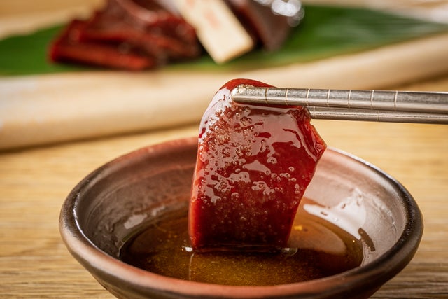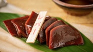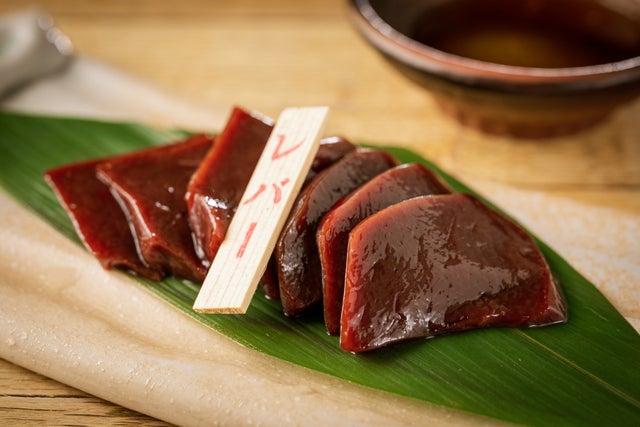 とろっとした口当たりやプルプルした食感は、牛のレバーとよく似ていますが、牛より芯があり、コリコリとしているのが特徴です。