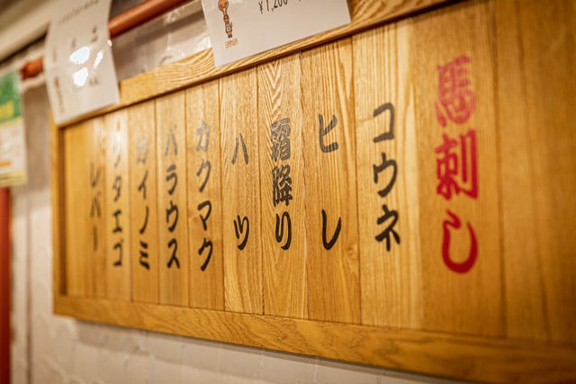 →ヒレ、ロース、ハツ、ラムダゴ、ヒモ、馬ソーセージ