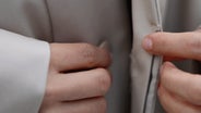 前合わせはボタンの見えない比翼式で、羽織るだけでももちろん、通常のトレンチコートのように前を留めて防風性を高められる仕様です。