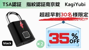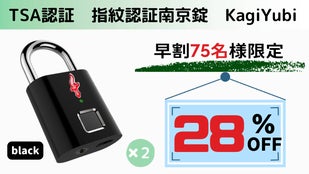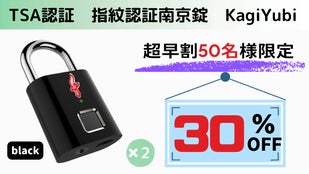 【先着30名様 超超早割】TSA認証 指紋認証南京錠 KagiYubi @2台