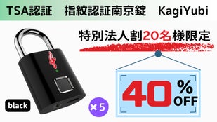 【先着20名様 特別法人割】TSA認証 指紋認証南京錠 KagiYubi @5台