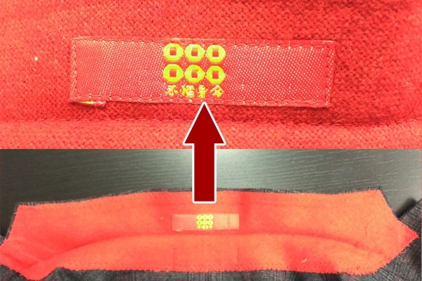 ▼襟を裏返すと、赤地で真田カラーを演出。