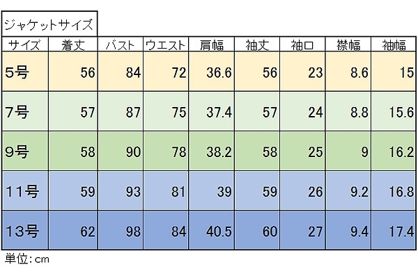 【ジャケットサイズ表・生地見本】