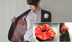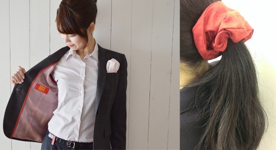 ▼ジャケットに5名様限定で上田紬で制作したシュシュをお付けします。
