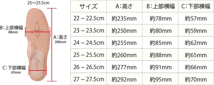 サイズ展開: 22〜22.5cm/23〜23.5cm/24〜24.5cm/25〜25.5cm/26〜26.5cm/27〜27.5cm