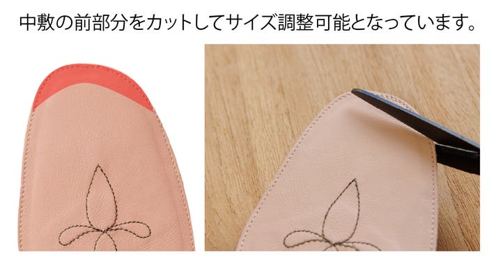 *中敷の前部分をカットしてサイズ調整可能となっています。