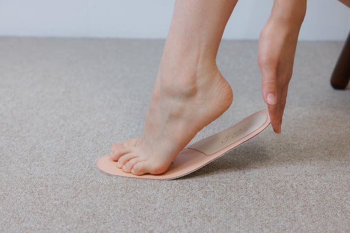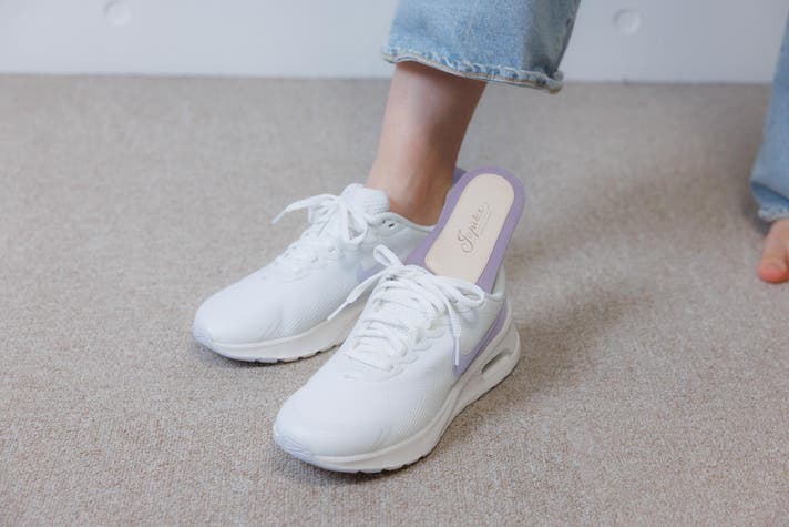 細めの靴はNG →パンプスはおすすめではないです。ヒールのある浅履きのデザインは、甲をしっかりホールドできないため、ストッキング着用時には前滑りを起こしやすくなります。長時間のご使用では足への負担が大きくなることがあり、ヒールやパンプス用中敷は、使用しないでください。