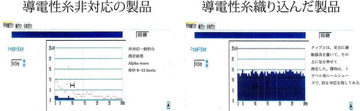 導電性糸を革に織り込み、歩くだけで体にたまる静電気を自然に放出。