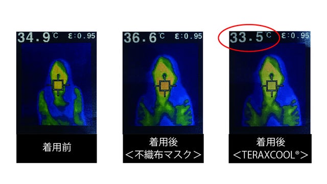 また、太陽光からの遠・赤外線を遮蔽し着用温度の上昇を抑制する遮熱効果を発揮し、放熱・遮熱同時効果を実現し、使用時から冷感が持続します。着用前にマスクを振ってから着用するとよりひんやり感が増します。