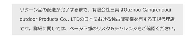 有限会社三美は、本プロジェクトのリターン完了まで、製品を独占販売する権利をもつ日本の正規代理店です。 並行輸入品が発生する可能性があります。非正規の個人輸入等は、完全に防ぐことができない事がありますので、ご了承お願いいたします。 並行輸入品は正規代理店によるサポートを受けられません。正規代理店は、国内で使用する製品に求められる認めを取得し、関税を適切に処置しています。 また、類似品が流通する場合があります。弊社では他社類似品についてのお問い合わせには対応できかねますのでご了承お願い致します。 本文中のスケジュールは、プロジェクト公開時点での予定です。応援購入の性質上、配送遅延のおそれがございます。 配送遅延に伴う応援購入のキャンセルは、原則として出来きませんが、リターン配送予定月から2ヵ月を超えた場合には、希望者の方にはキャンセル対応させていただきます。