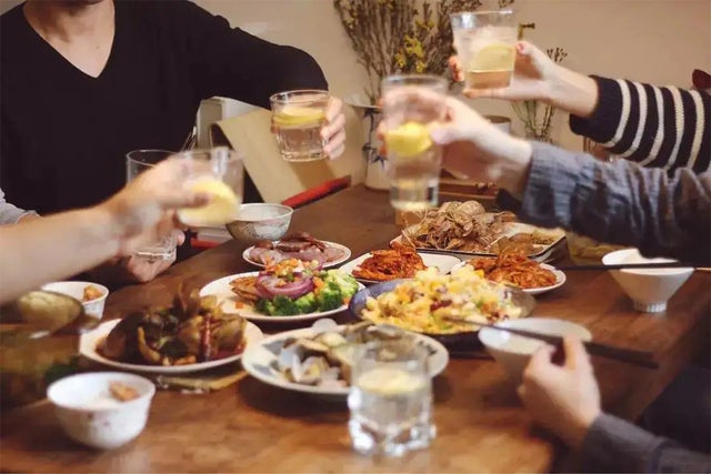 みんなで座ってお茶や食事を楽しんで生活を満喫してください。