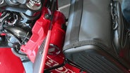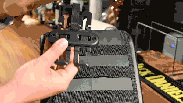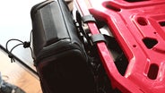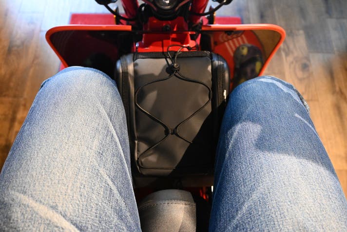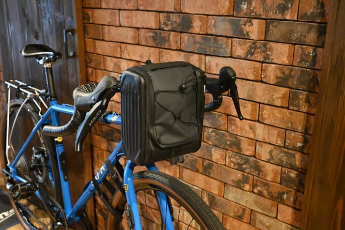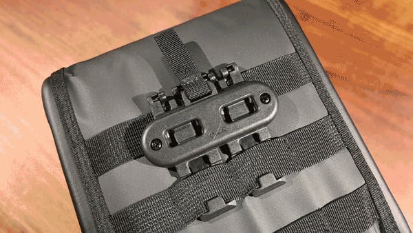 センターキャリアバッグを付けることで、ニーグリップの役割も果たします。両サイドは熱成型プレス加工を施しているので、ニーグリップしても型崩れしにくい仕様になっています。