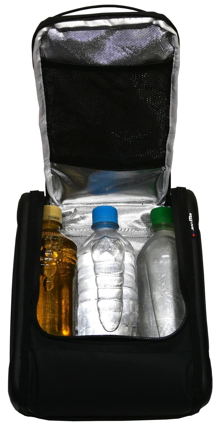 収納スペースは、ペットボトル(500ml目安)が3本入ります。また、雨が降った時に使用するカッパ(上下)がすっぽりと入ります。