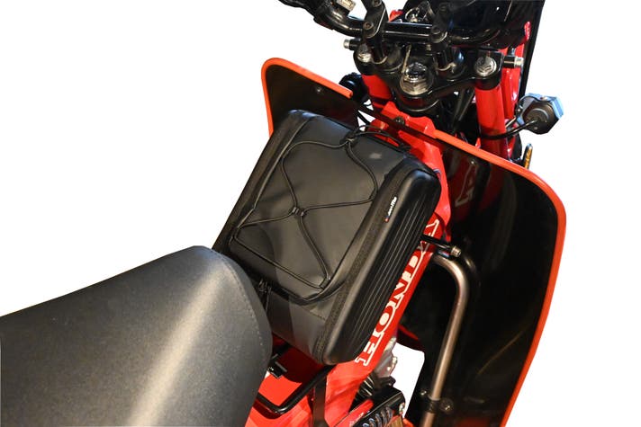 CT125には、大型のリアキャリアが付いていますが、キャンプやツーリングに行く際、積載量が足りないことが多いです。しかし、センターキャリア(ベトナムキャリア)に今回のセンターキャリアバッグを付けることで、積載量が増えるので便利です。