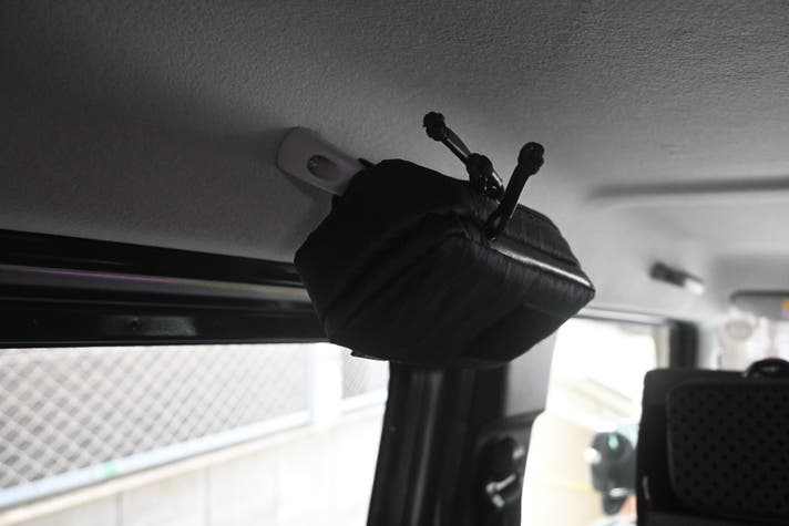 車のアシストグリップにも取り付け可能です。