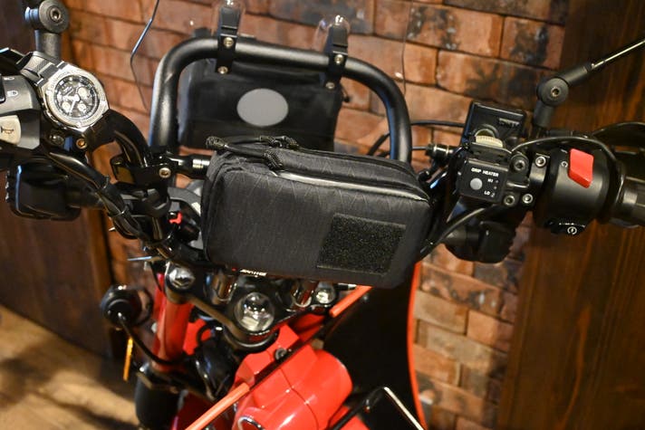 シリコンベルトになっているので、バーやフレームに取り付け可能です。