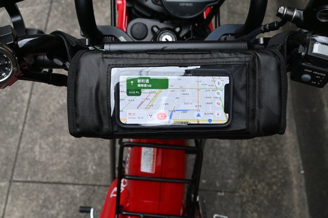 スマートフォンをマウントに直接取り付けたりすると、カメラに搭載されている光学式手振れ補正システムがバイクの振動で故障してしまう恐れがありますが、ハンドルバーバッグのスマートフォン入れに入れると振動を軽減することが出来ます。