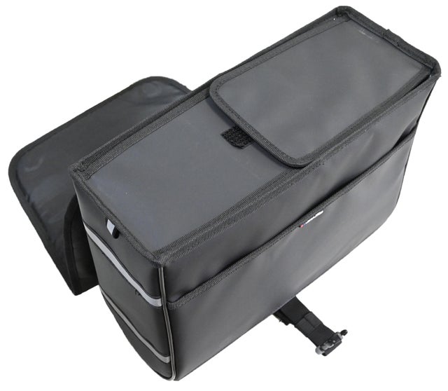パニアバッグ(サイドバッグ)とは、バイクに積載することが出来るバッグでバイク後輪タイヤ横に横に付けることが出来るので、ライダーが背負わなくても簡単に運べる利便性を備えています。ツーリング時、快適に走行することが出来ます。