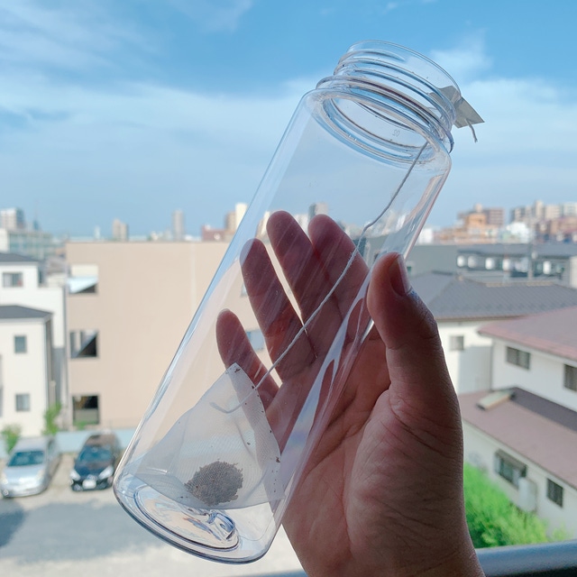 また、ティーバッグの紐の部分も長く設計しているため、市販の耐熱ドリンクボトル(500ml以下)にもぴったり持ち手が出るようになっております。
