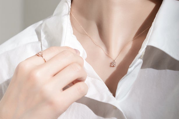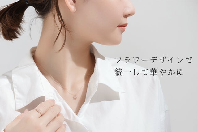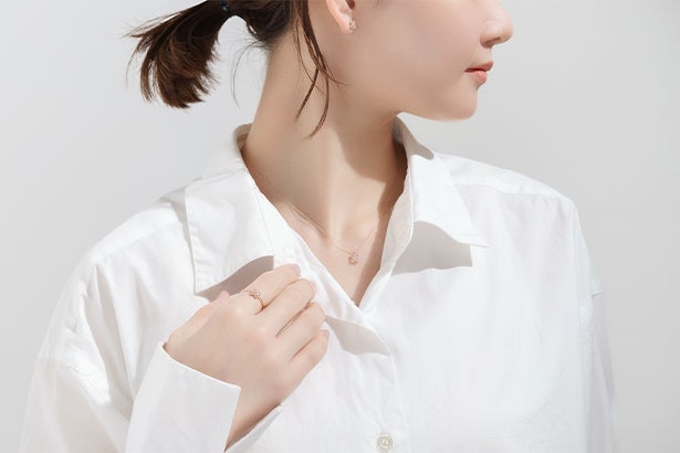 胸元でキラッと輝くダイヤモンドと寄り添い優美な印象を与えます。
