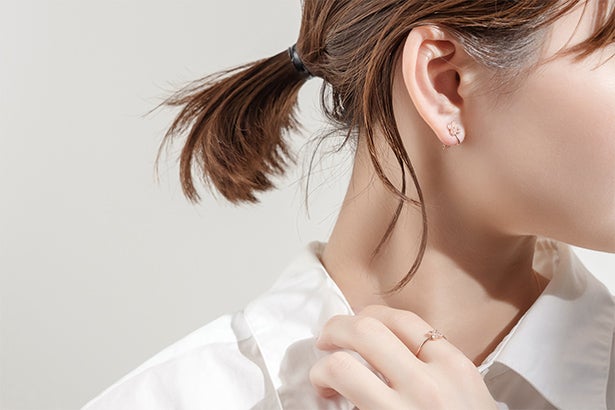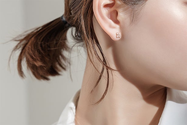 耳元で繊細な煌めきを演出し、どんなシーンでも着用し易いデザインです。