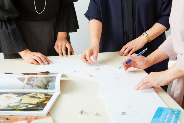 働く女性たちの意見に耳を傾け、今までにない新しい発送のジュエリーを開発すべく今回のプロジェクトに取り組んでいます。