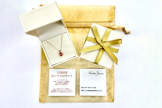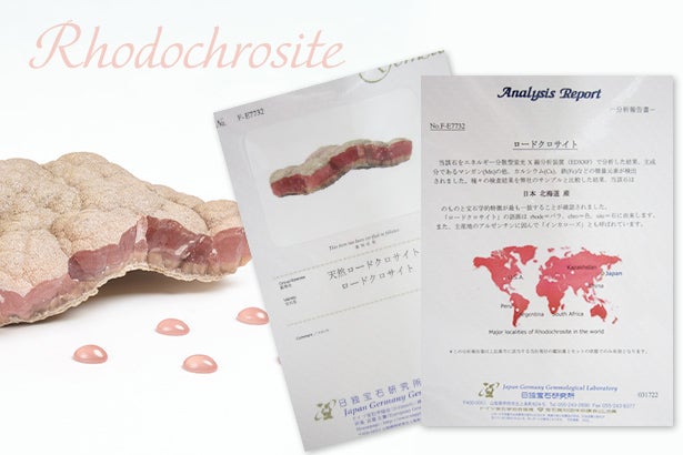 - 北海道産の希少な宝石「ロードクロサイト」(別名インカローズ)を使用したジュエリー