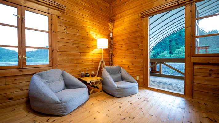 こちらも1棟貸切でペットとも泊まれて、自然の中に身をゆだねて楽しむタイプの宿泊施設です。