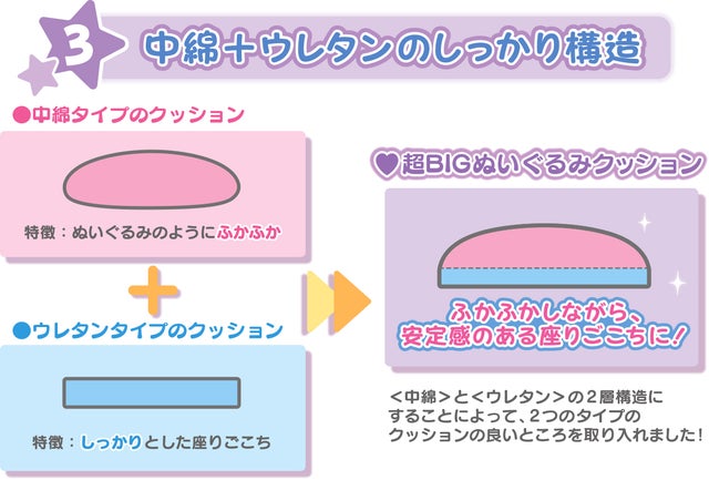 - いつまでも触りたくなっちゃうふかふか触感と、ウレタン入りでしっかり包み込まれる安定感♪