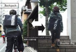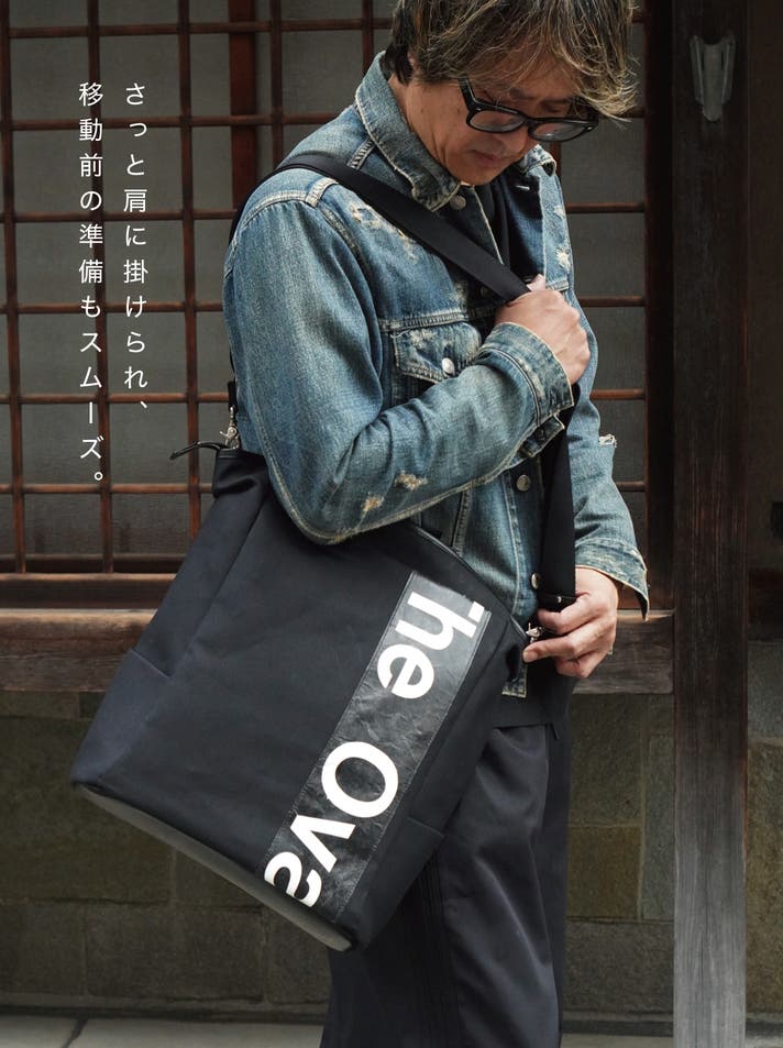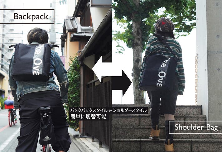 移動の途中でも、背負う・掛けるを自然に切り替えられる軽快さ。