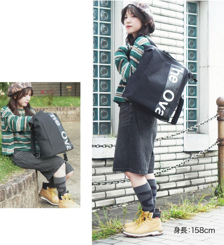 持ち手を使えば、すっきりとしたハンドバッグスタイルにも。