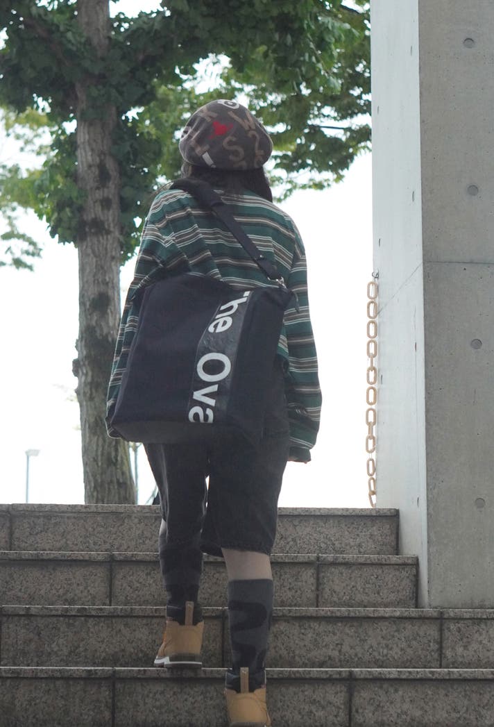 このバッグの主役となる素材は、役目を終えたバスの行き先案内表示です。街を走り、人の時間を刻んできた方向幕には、新品の素材にはない表情が宿っています。
