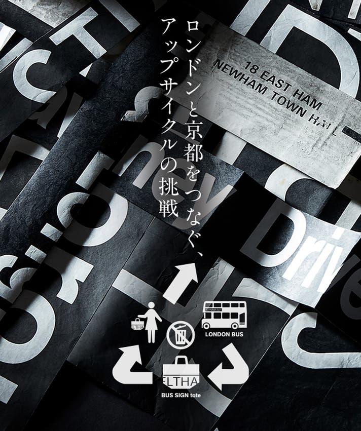 ロンドンバスをはじめ、英国各都市で役目を終えたバスの行き先案内表示「バスロールサイン」を素材としてアップサイクルし、日本の職人が仕立てる一点物バッグを展開しています。
