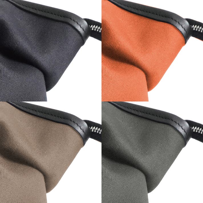 日常に自然と馴染み、長く使い続けられることを前提に、本体カラーは4色に絞りました。色はバッグの印象を決めるだけでなく、組み合わされる素材の表情にも影響します。