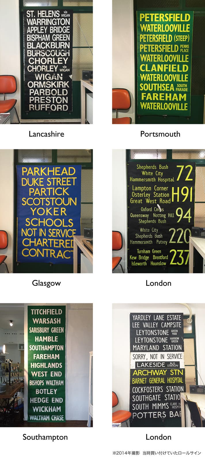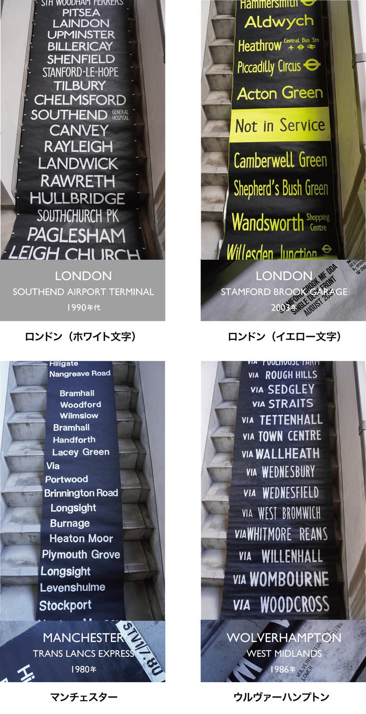 今回使用するバスロールサインは、ロンドン、マンチェスター、ウルヴァーハンプトンなど、イギリス各地で実際に使われていたものです。