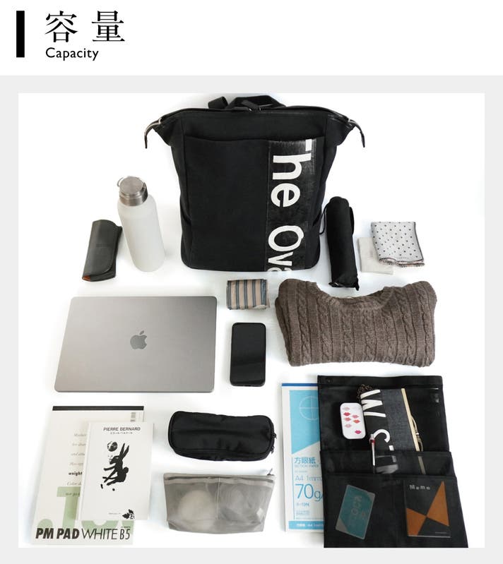 大きめのリュックでありながら、肩に掛けた姿も自然に成立する。