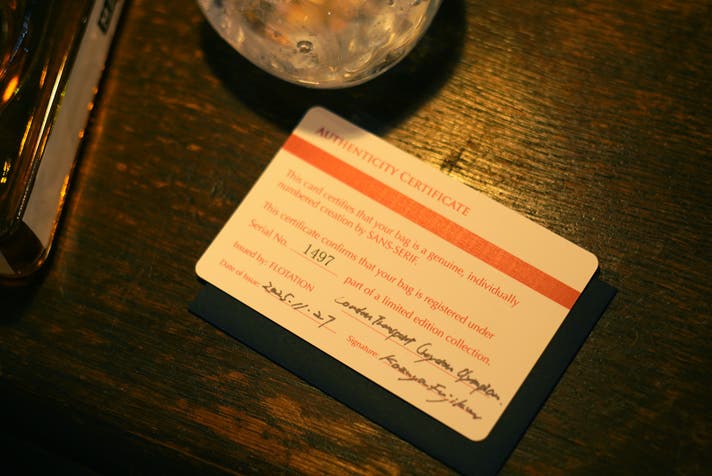 ほどなくして京都で鞄職人と出逢ったことをきっかけに、製品化への道が一気に開けました。打ち合わせでは素材への思いや意図を丁寧に共有し、「安心して長く使えること」を軸に最良の製法を選びながら、熟練の技で一つひとつ丁寧に仕立てていただき、SANS-SERIFは少しずつ形になっていきました。