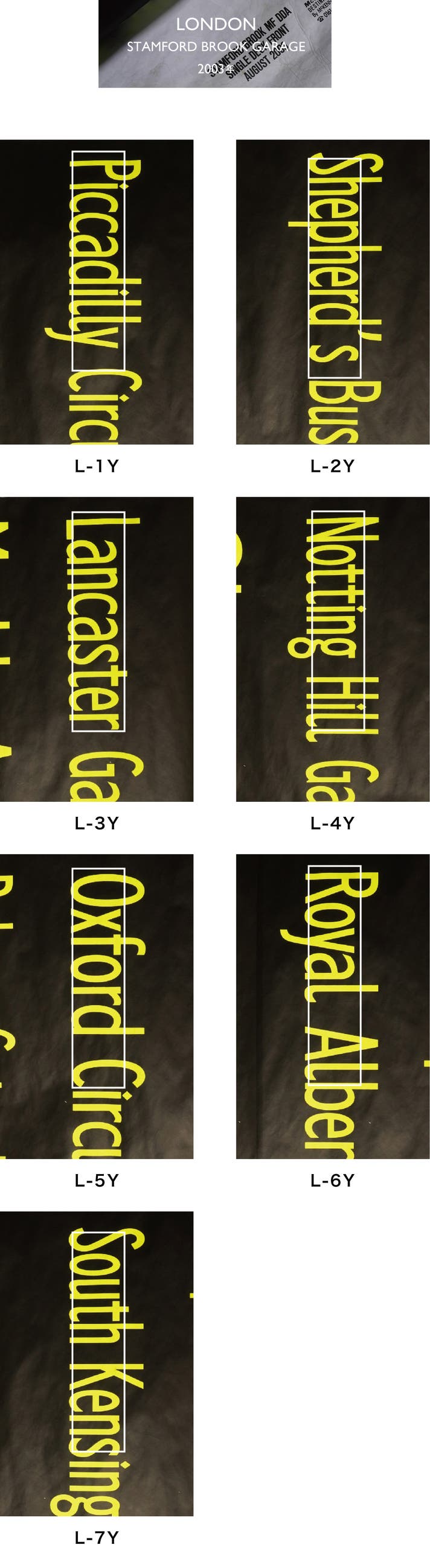 ロンドンバスの車体に実際に搭載されていたロールサイン(バスの前面で回転して変わる、行き先案内表示の方向幕)、その長く拡げたときの文字群は美しく、その趣に魅了され本国イギリスのコレクターから直接買い付けて、当時自分のスペースに飾っていました。